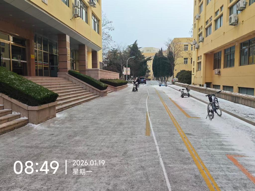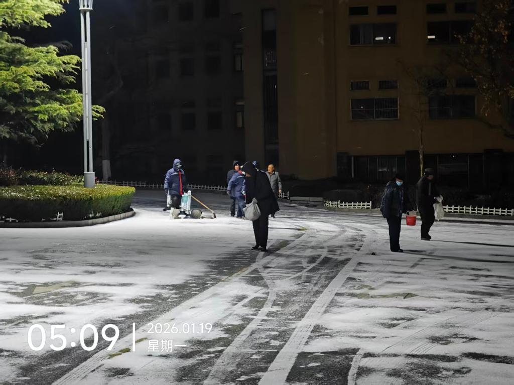 一夜风雪至,校园裹银装。近日,我市迎来大范围降雪,为校园披上了冬日限定的洁白盛装,却也让路面快速结冰、积雪湿滑难行,给全校师生的出行带来安全隐患。为切实筑牢校园安全防线,保障师生出行畅通无忧,后勤管理处第一时间启动大雪应急处置预案,迅速开展扫雪除冰工作,用责任与坚守为师生筑牢冬日安全。