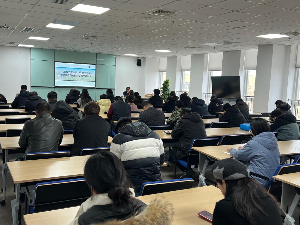 坚持源头把控。2月24日下午,饮食服务中心在会议中心403召开2026年春季学期食堂供应商食材安全供应培训会。各供应商业务负责人及中心管理人员共计50余人参加会议。会议传达了上级关于食品安全工作的相关文件精神,通报了当前食材供应中存在的主要问题,并提出具体改进要求。会议强调,随着春季学期开学临近,食品安全工作进入关键时期,各供应商要进一步提高思想认识,强化细节管理,确保食材来源安全可靠、质量过硬。校方将加大监督检查力度,严格把关食材入库质量,强化索证索票管理,做到源头可溯、过程可控,确保师生吃得放心、安心、健康。
